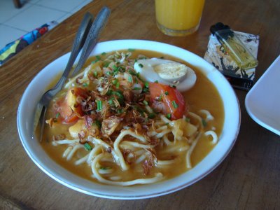 Mie koclok adalah makanan khas kota udang, Cirebon. mie koclok cirebon berisi mie kuning, potongan telor, suiran daging ayam, dan diberi penyedap berupa potongan daun bawang, kol. dan bawang goreng, nah yang bikin beda tu kuahnya.. kuahnya itu berupa santan kental dengan campuran aci dan kaldu ayam, jadi kental-kentalnya mirip cream soup.